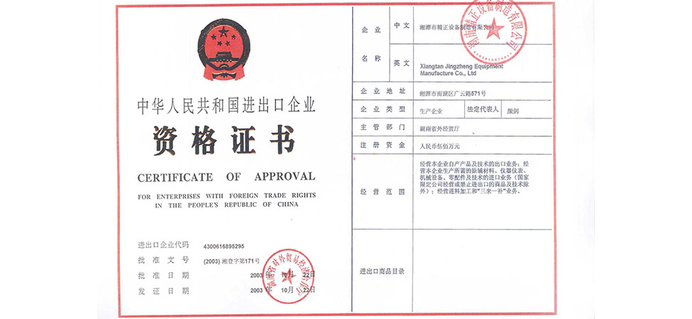 湖南精正設(shè)備制造有限公司成立;2月,與清華大學(xué)材料科學(xué)工程系聯(lián)合研制屬于國(guó)家863計(jì)劃項(xiàng)目的陶瓷膠態(tài)注射成型機(jī);10月23日,獲得國(guó)家進(jìn)出口經(jīng)營(yíng)權(quán)。